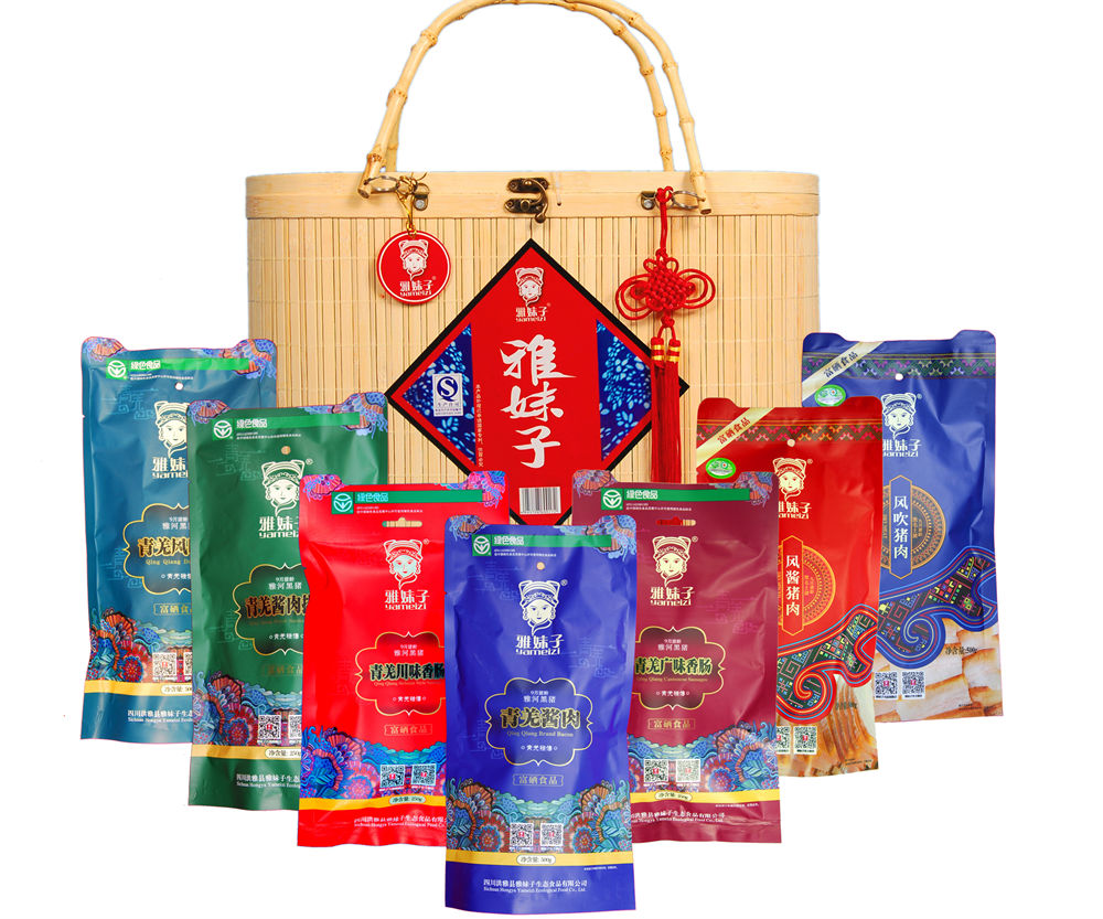 四川雅妹子生态食品股份有限公司,位于国家级生态示范区——四川省眉山市洪雅县,2007年4月11日成立,是一家集种植、养殖、屠宰、加工、销售为一体,一二三全产业链融合的民营股份制企业。公司以传承青羌美食文化为已任,专业研发生产黑猪风酱腌腊肉食品系列、休闲肉食品系列。产品特点:生态、绿色、有机。注册商标:“雅妹子”、“雅河”、“青羌”、“猪闷闷”、“雅女”等。