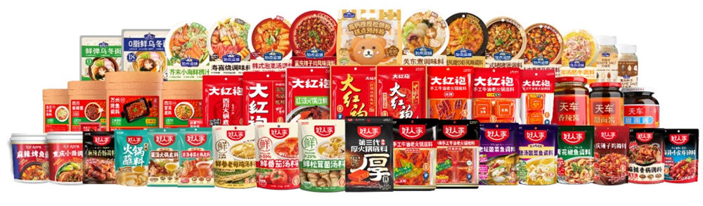 四川天味食品集团股份有限公司以“用美味创造美好生活”为使命,自设立以来一直专注于复合调味料的研发、生产和销售,现已发展成以火锅调料和中式菜品调料为主导的大型复合调味料生产企业,注册资本10.65亿元,现有员工3000余人。公司主要品牌包括“好人家”“大红袍”“天车”“天味食品餐饮高端定制”“拾翠坊”“加点滋味”六大品牌,其中“大红袍”“好人家”商标曾被认定为“中国驰名商标”,“天车”商标被商务部认定为“中华老字号”。